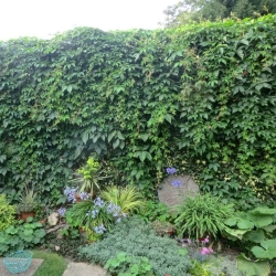 Плотная фактура листвы создаёт идеальную живую стену. Там, где хочется уединения, где нужно спрятать технические зоны, где фасаду не хватает жизни, эта лиана решает задачу за один сезон.