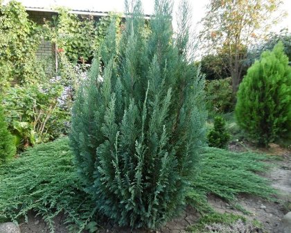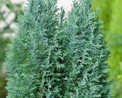 Кипарисовик Лавсона Ван Пелтс Блю — форма кроны густая, узкоконусовидная, правил...