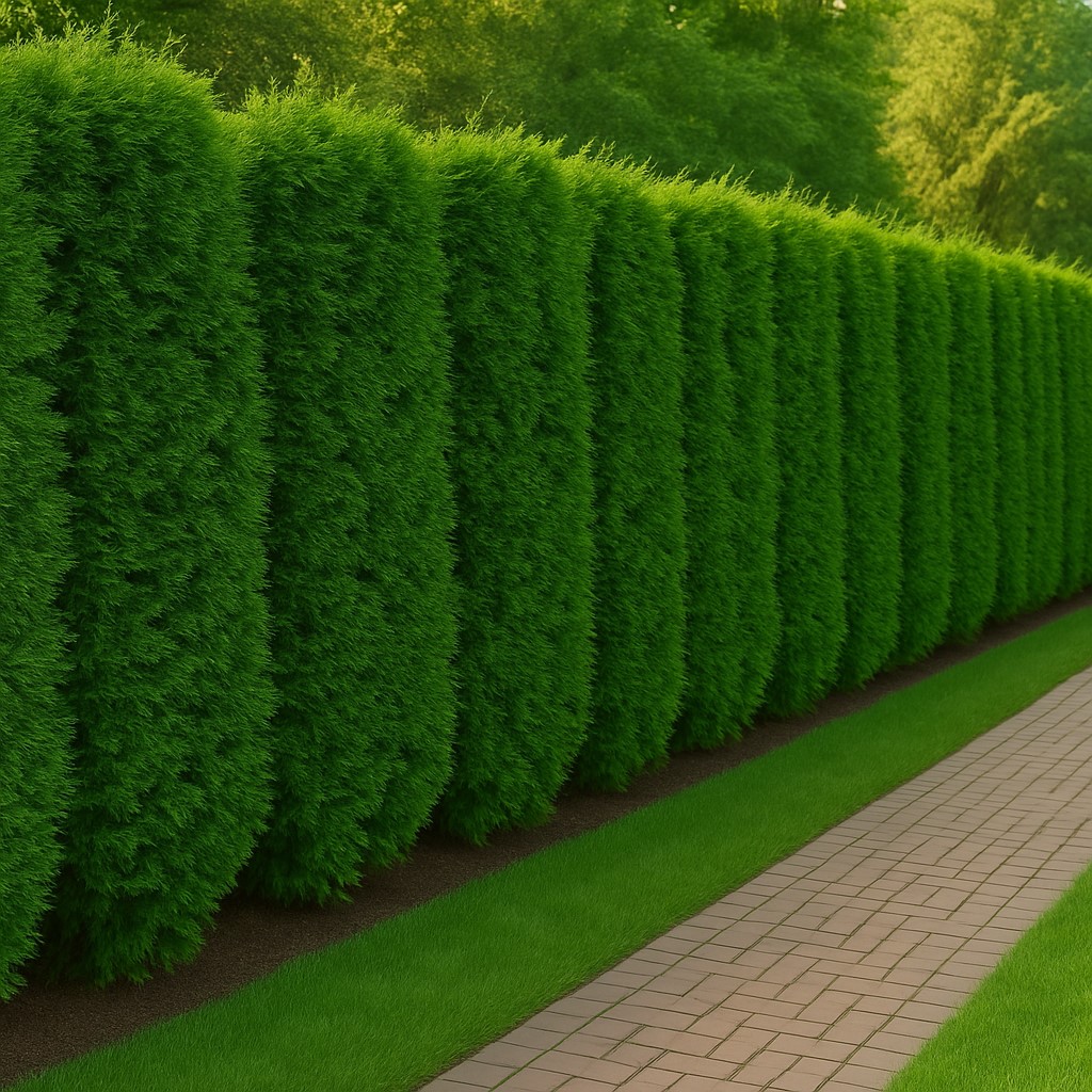 Это набор для создания плотной, высокой и надёжной вечнозелёной живой изгороди из туи западной Брабант, которая за короткое время формирует полноценную зелёную стену. Этот сорт ценят за активный рост, хорошую способность к смыканию и устойчивость в различных условиях.